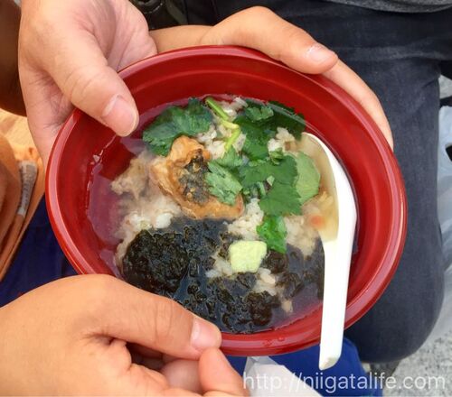 今年のえんま市もすっかり終わり完全に祭りの後ですが、食べたものと場所をご紹介します。まだ行かれたことがない方はぜひ来年のためにえんま市の様子をぜひ知ってくださいね。 柏崎名物「鯛茶漬け」。市民プラザ前でゲット。 鯛焼き型の「ふわふわ鯛入りだ…